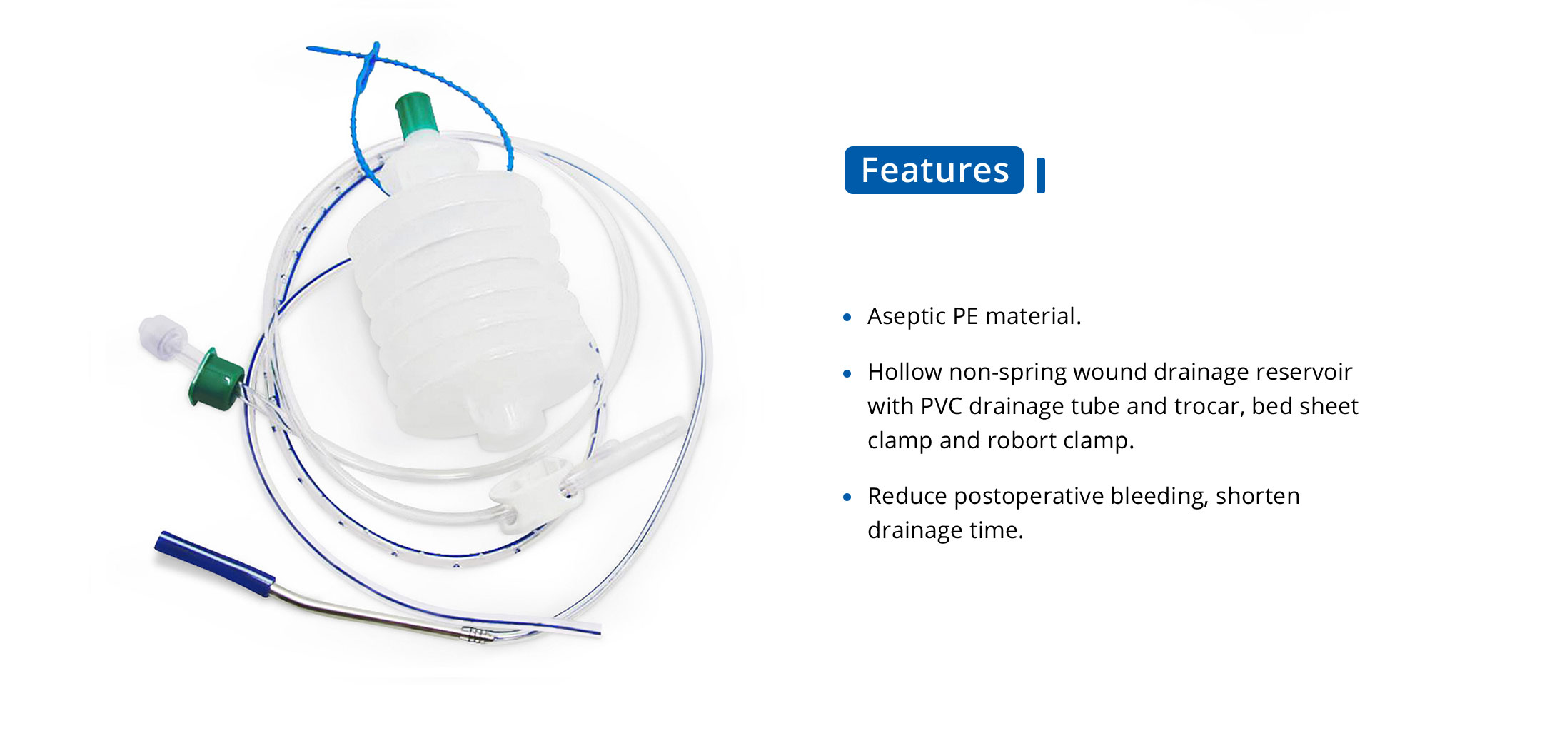 Used to drainage the hematocele and effusion during and after the operation.