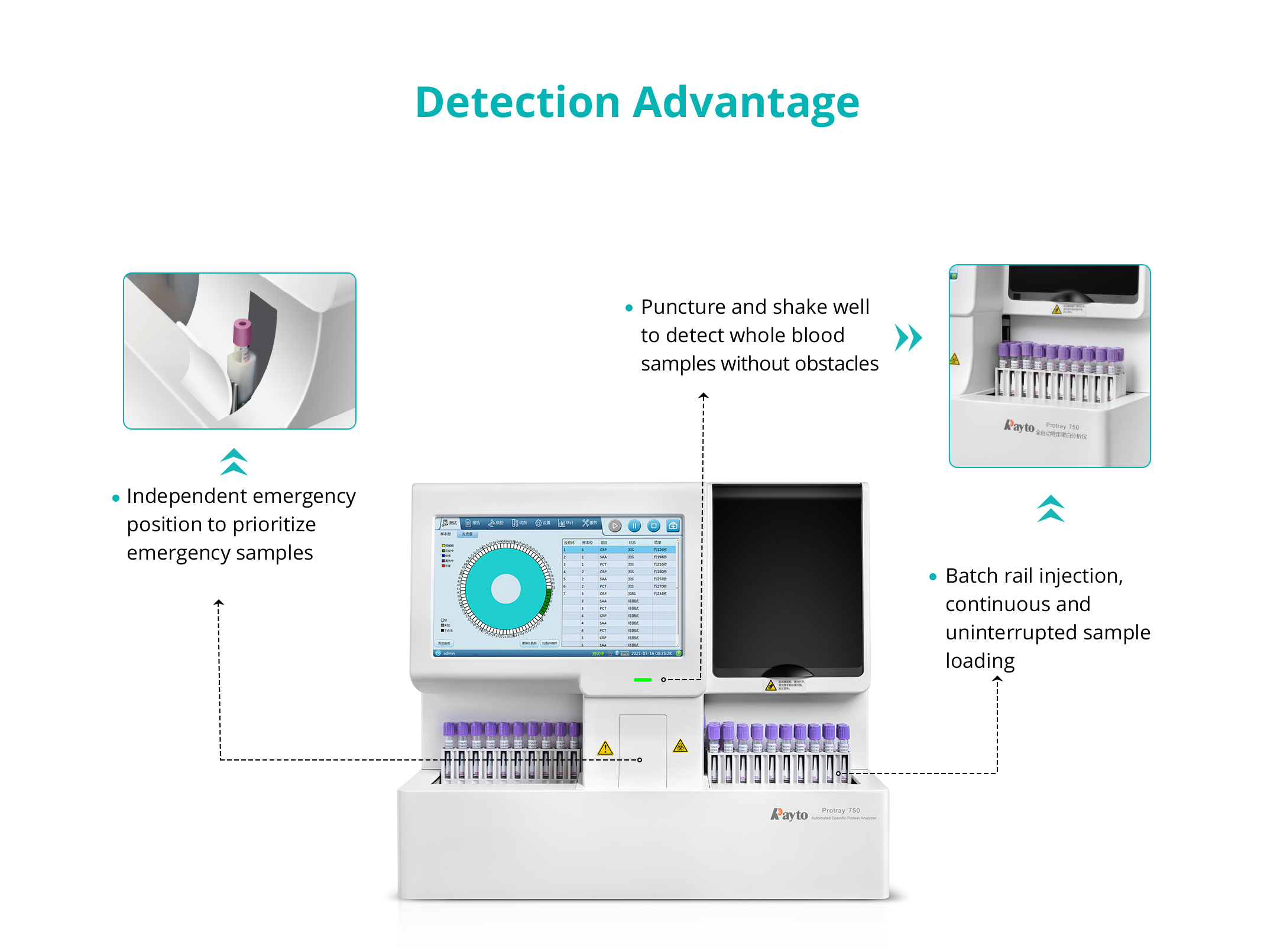 Automatic sample loading, immune turbidimetric principle, fast detection speed, and accurate test results.