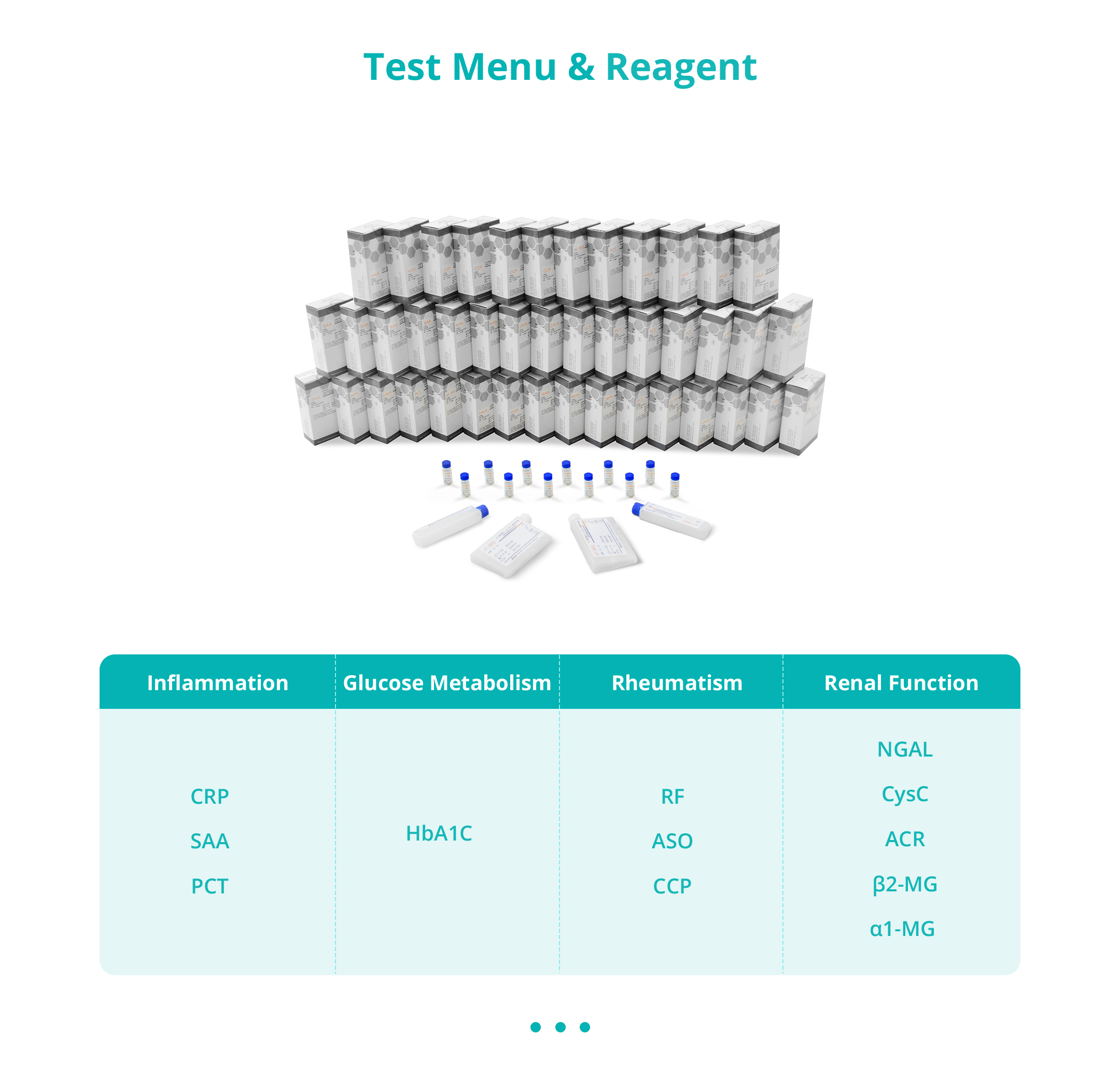 HbA1c, CRP, SAA, PCT, RF, ASO, CCP, NGAL, CysC, ACR, β2-MG, α1-MG
