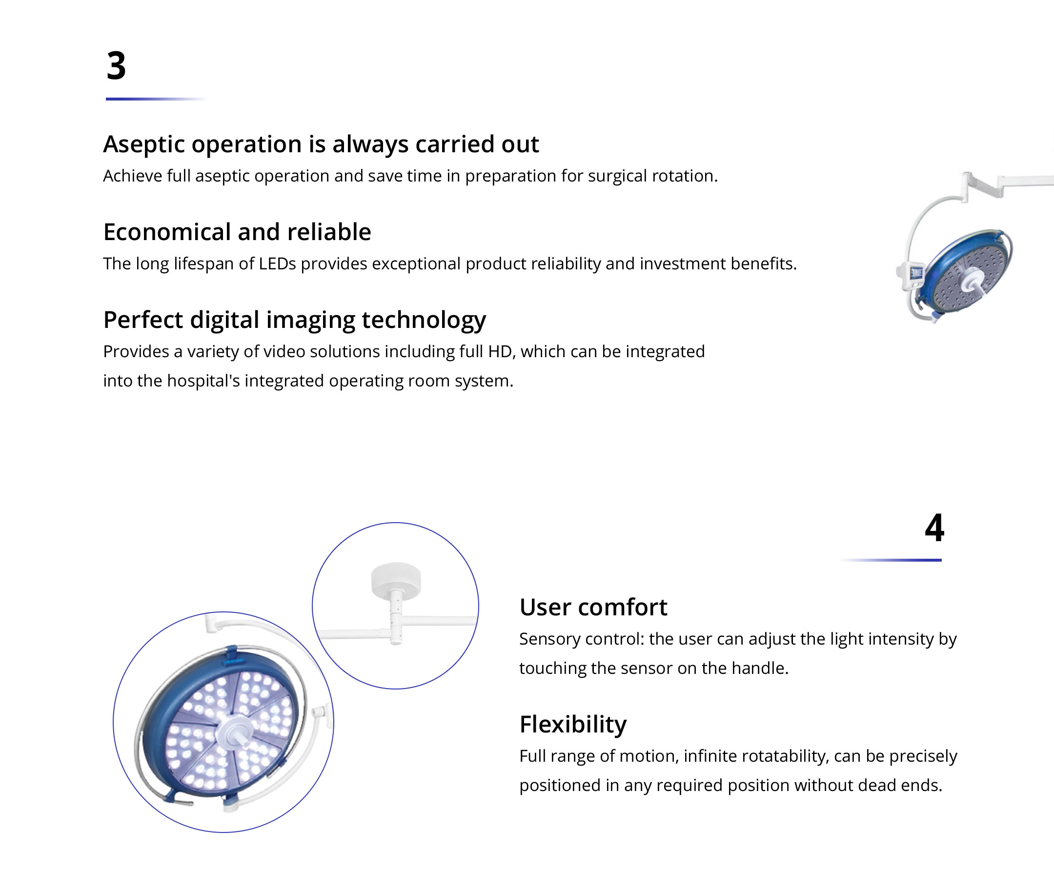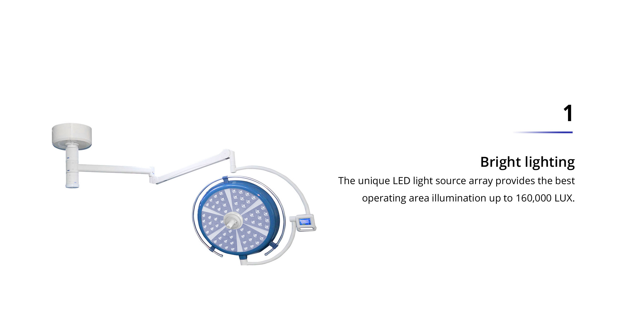 The unique LED light source array provides the best operating area illumination up to 160,000 LUX.