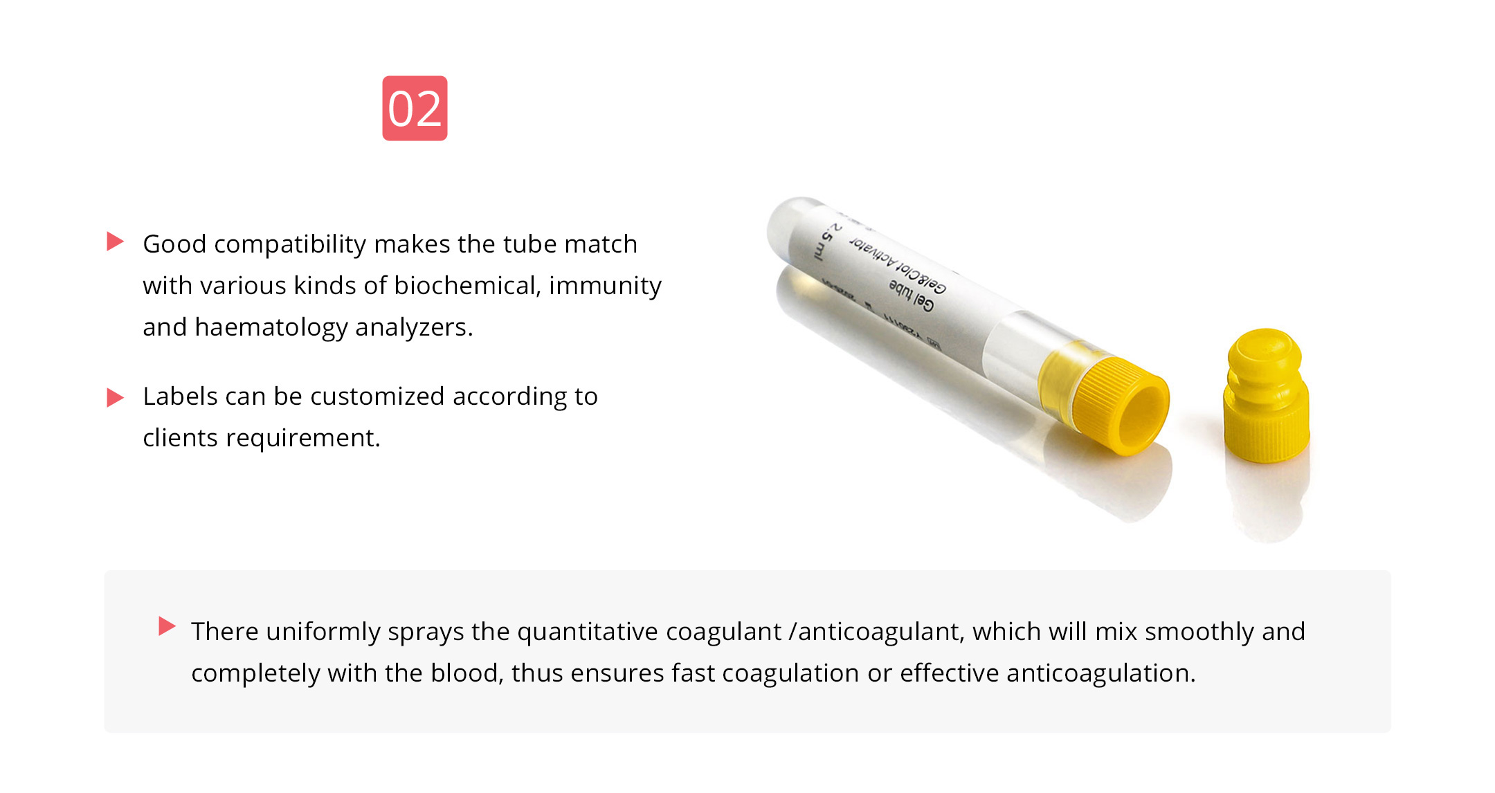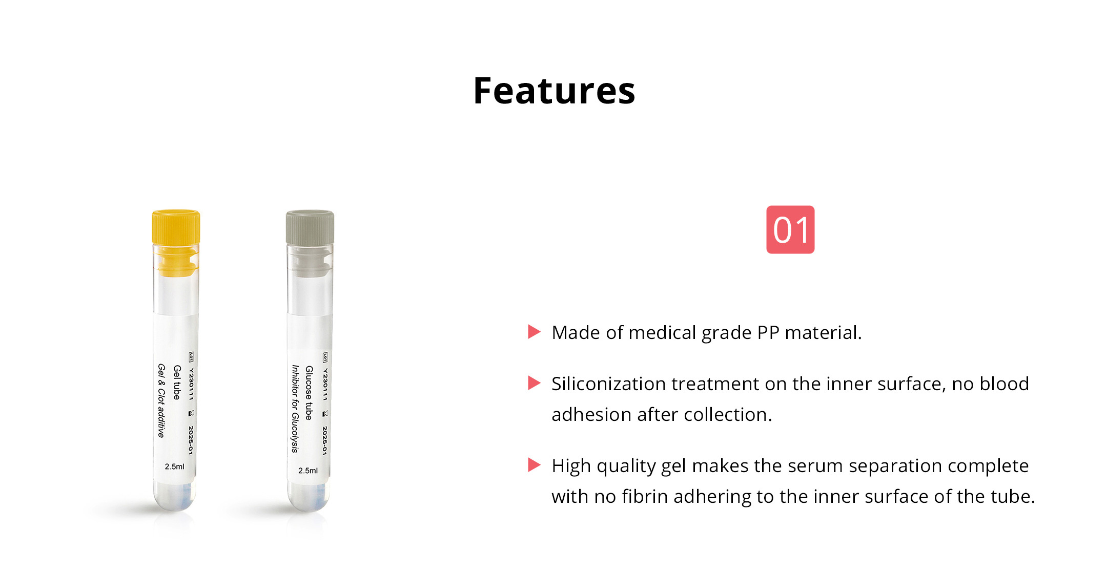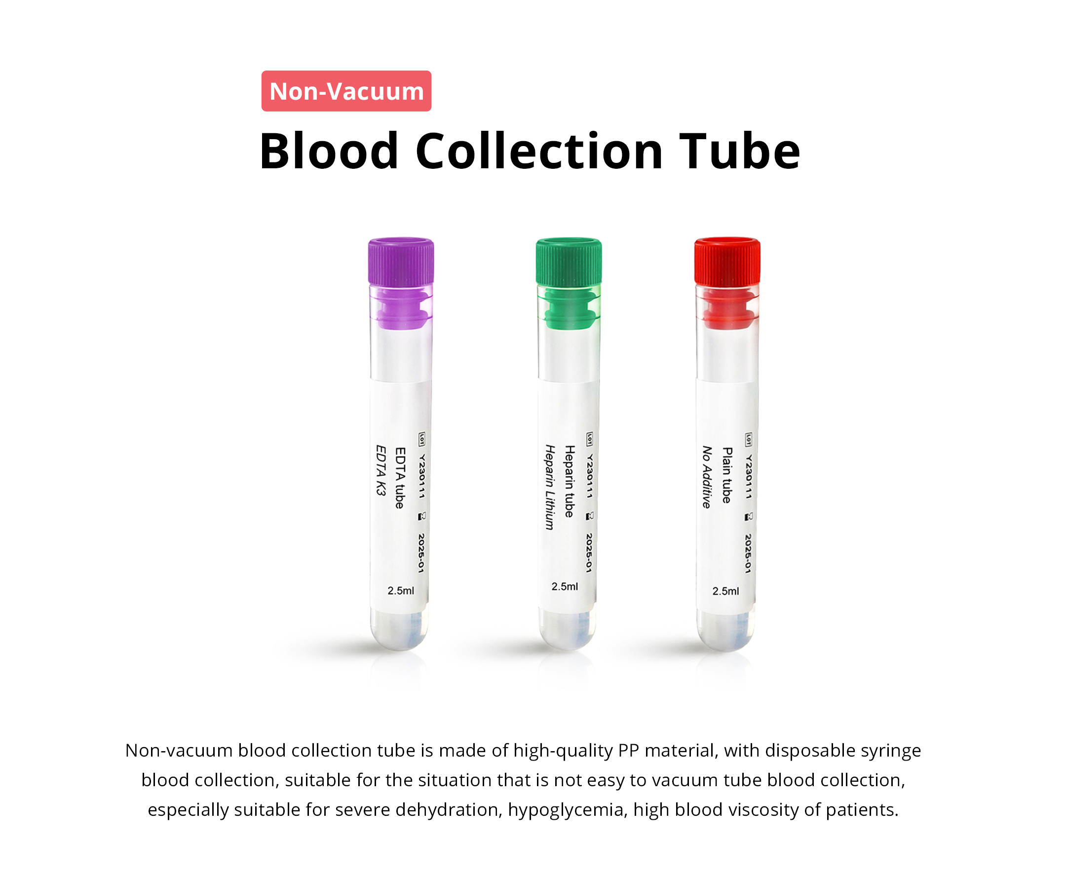 The tubes are made from medical grade PP material. Mainly used for peripheral blood collection, especially suitable for small children and geriatric patient.