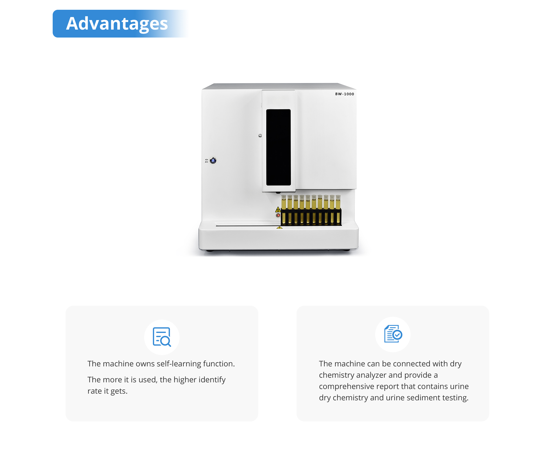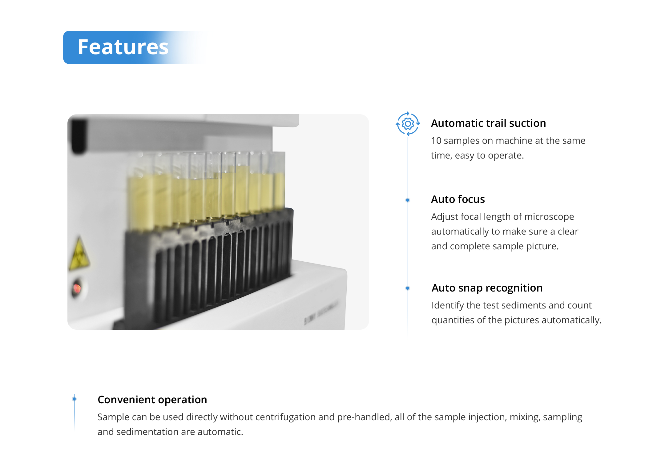 International universal quantitative unit, HPF & LPF, etc. Comprehensive graphic report, including dry chemical analysis and quantitative analysis of urine formed elements.
