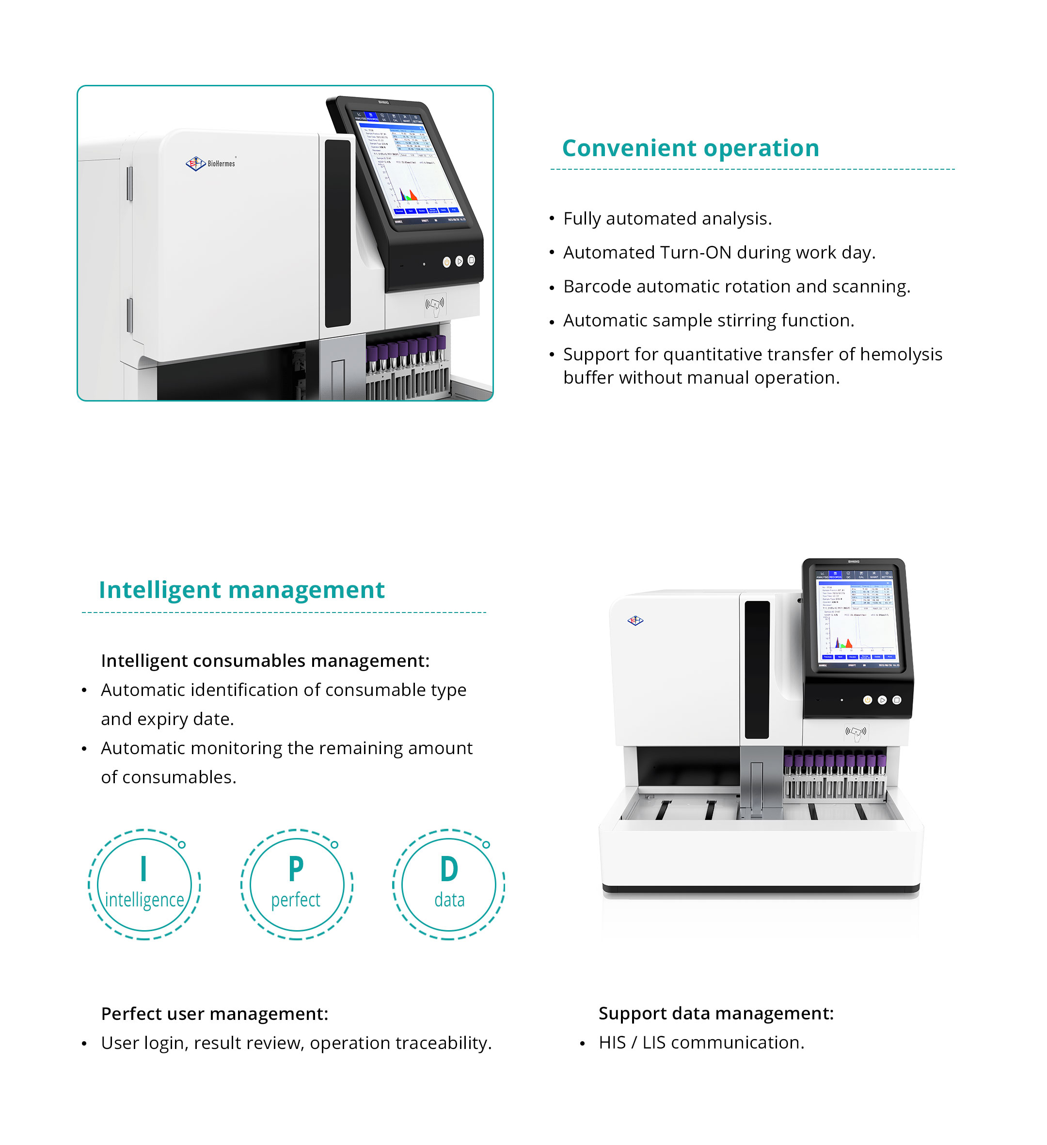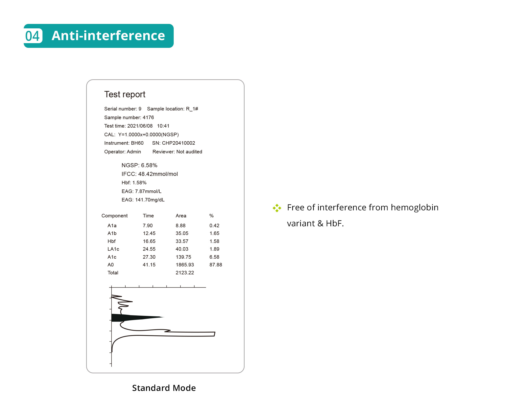 lon-Exchange HPLC methodology, 60 seconds / sample (standard mode), up to 110 samples at a time (support blood tube and sample cup).