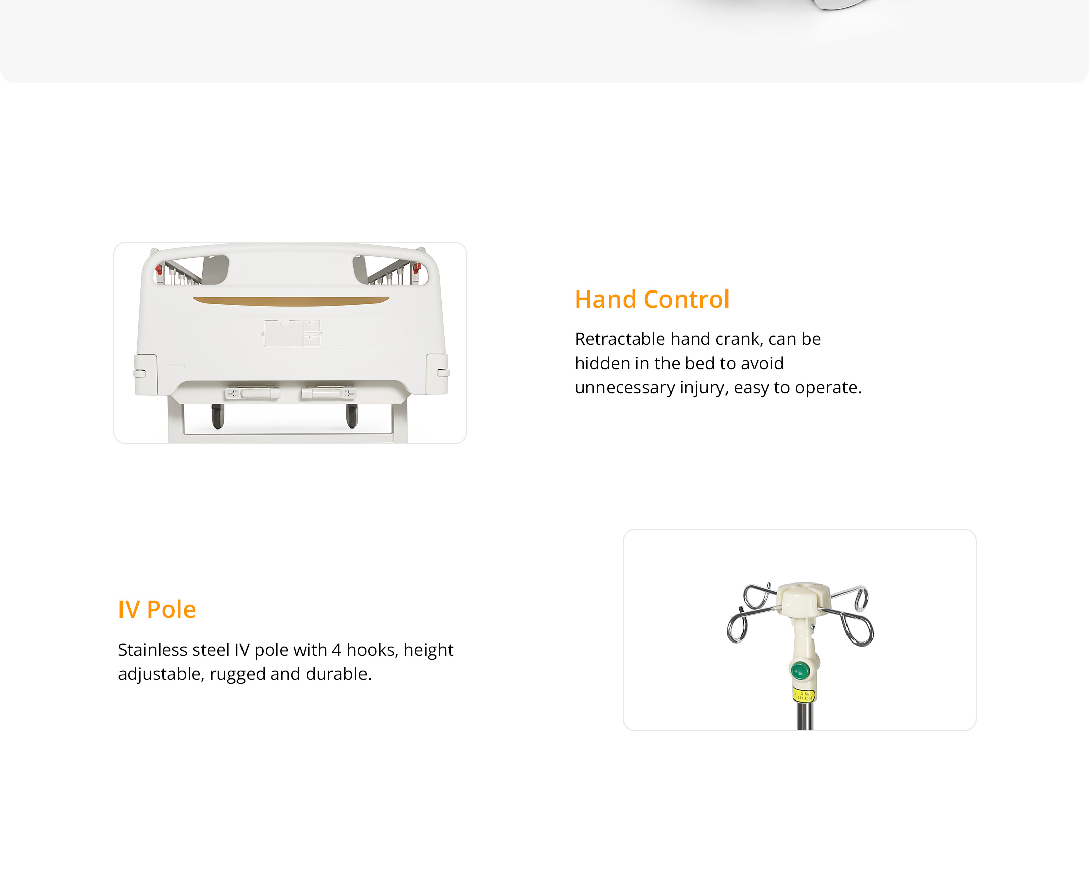 The back-rest and knee-rest can be adjusted by two manual cranks.